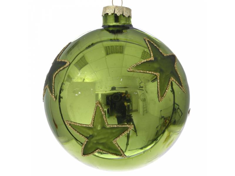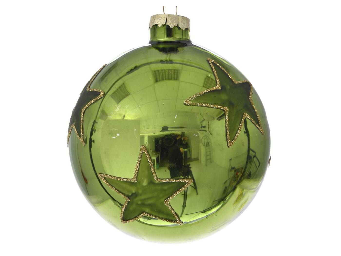 Πράσινη γυαλιστερή γυάλινη μπάλα με αστέρια 8 εκ. σετ 6-bigstore.gr