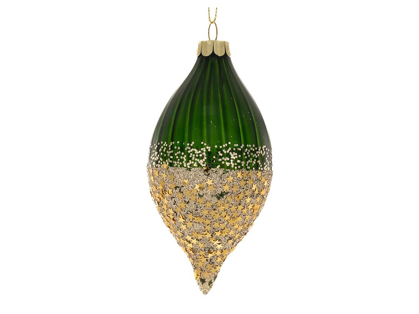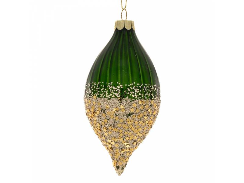 Σετ 6 πράσινη γυάλινη μπάλα δάκρυ με χρυσά αστέρια 6x13 εκ.-bigstore.gr