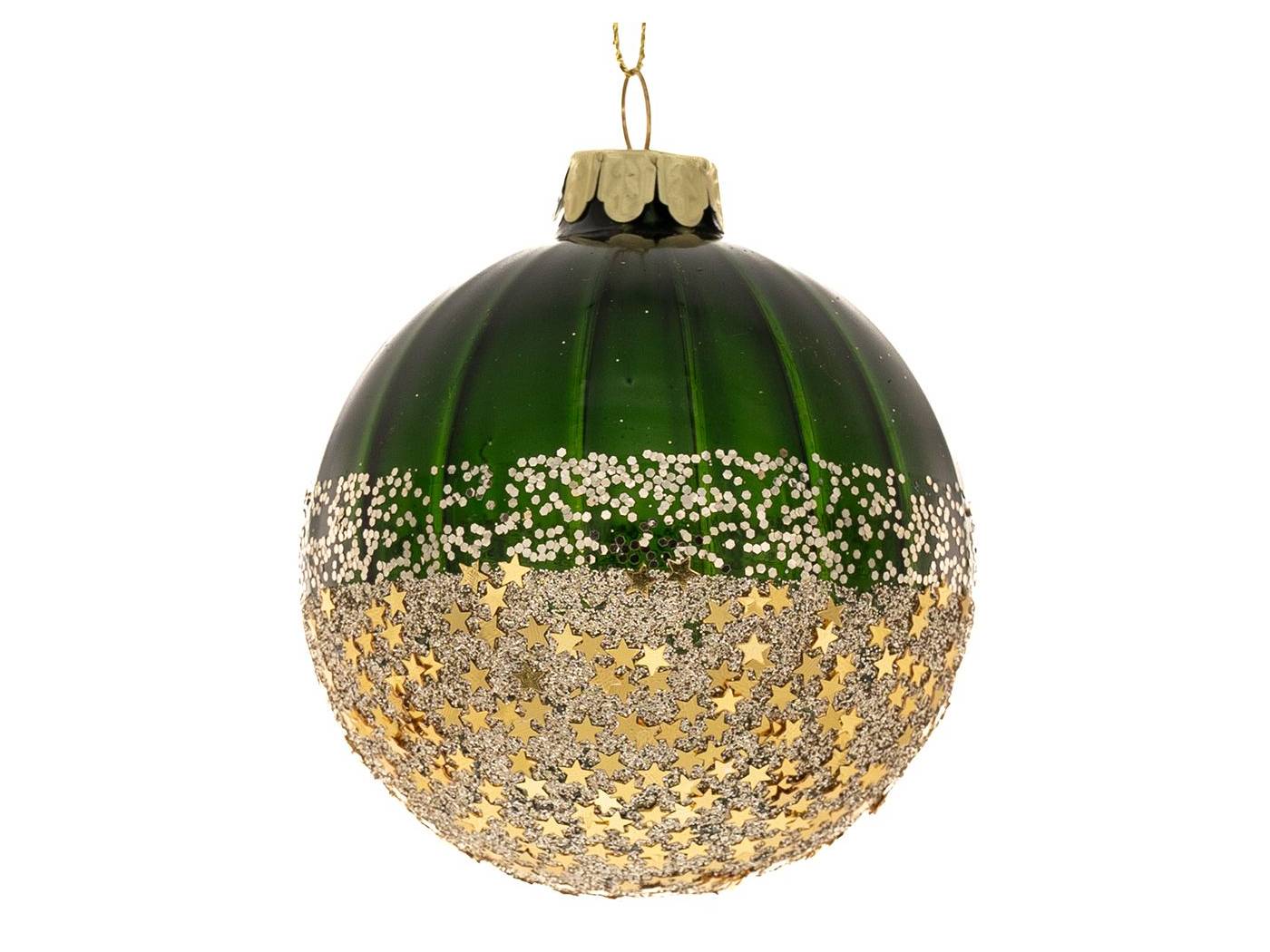 Σετ 6 πράσινη γυάλινη μπάλα δάκρυ με χρυσά αστέρια 6x13 εκ.