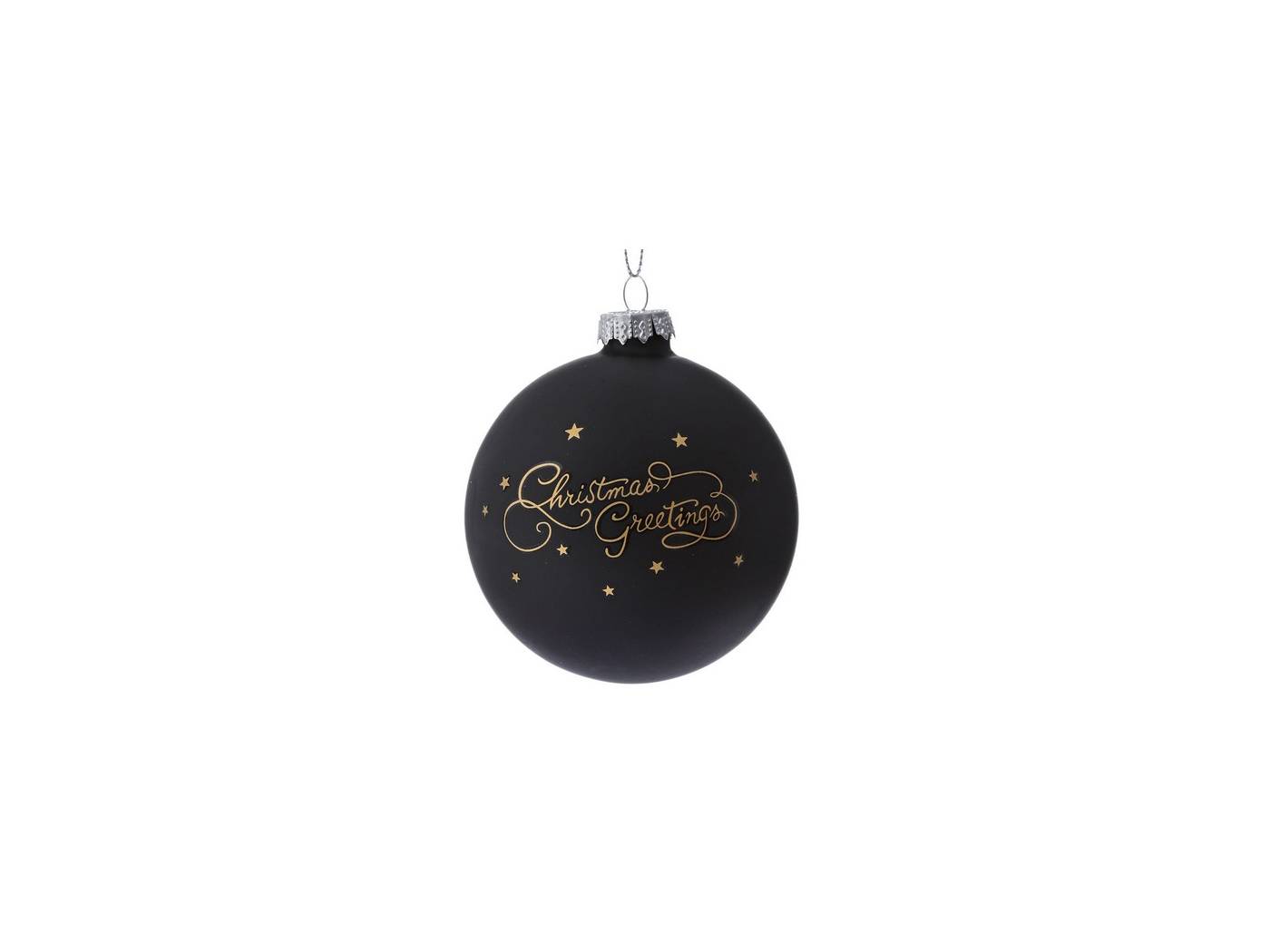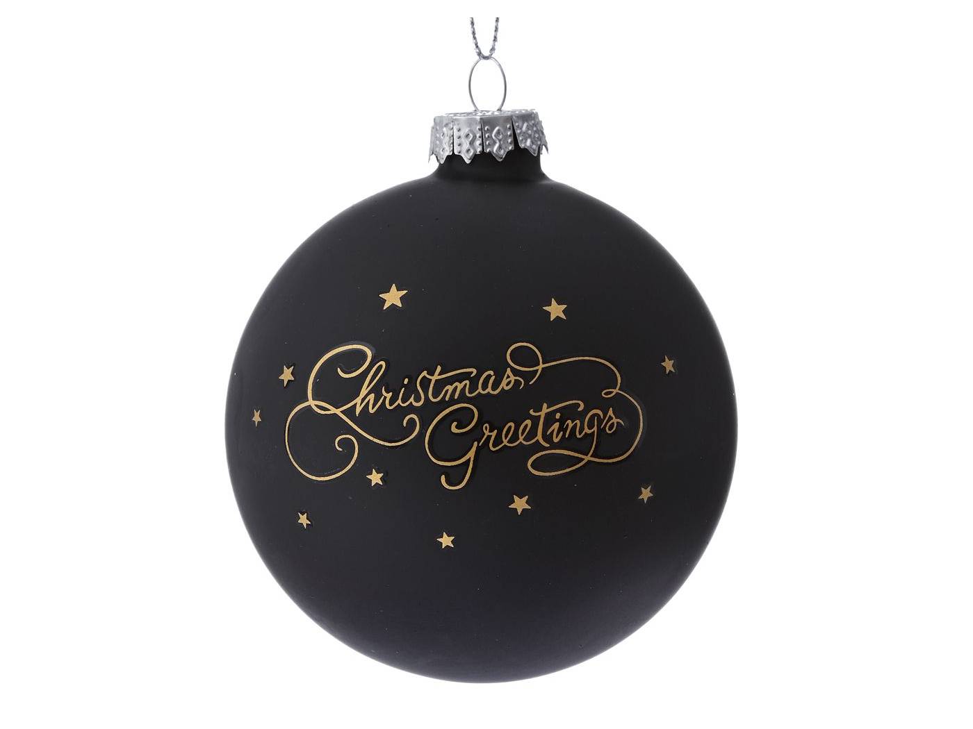 Set 6 τεμ. Χριστουγεννιάτικες μπάλες, μαύρες, "christmas greetings", 8 εκ.