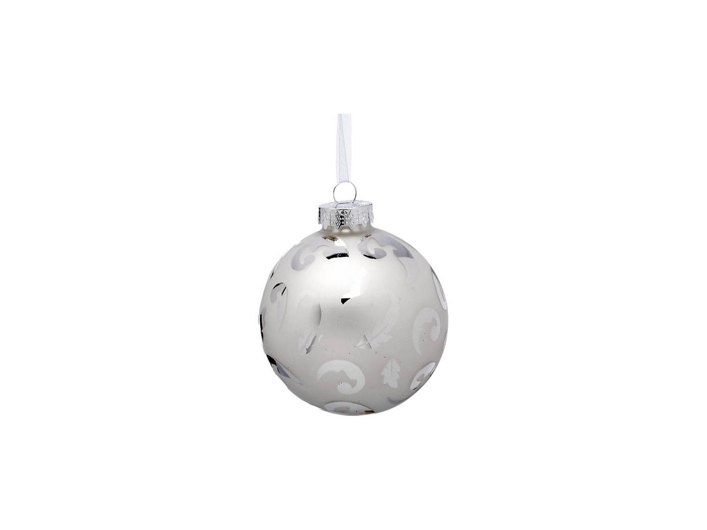 Γυάλινη χριστουγεννιάτικη μπάλα δέντρου, ματ ασημί χρώματος, με Γυαλίστερά σχέδια. 9εκ., Σετ των 3.