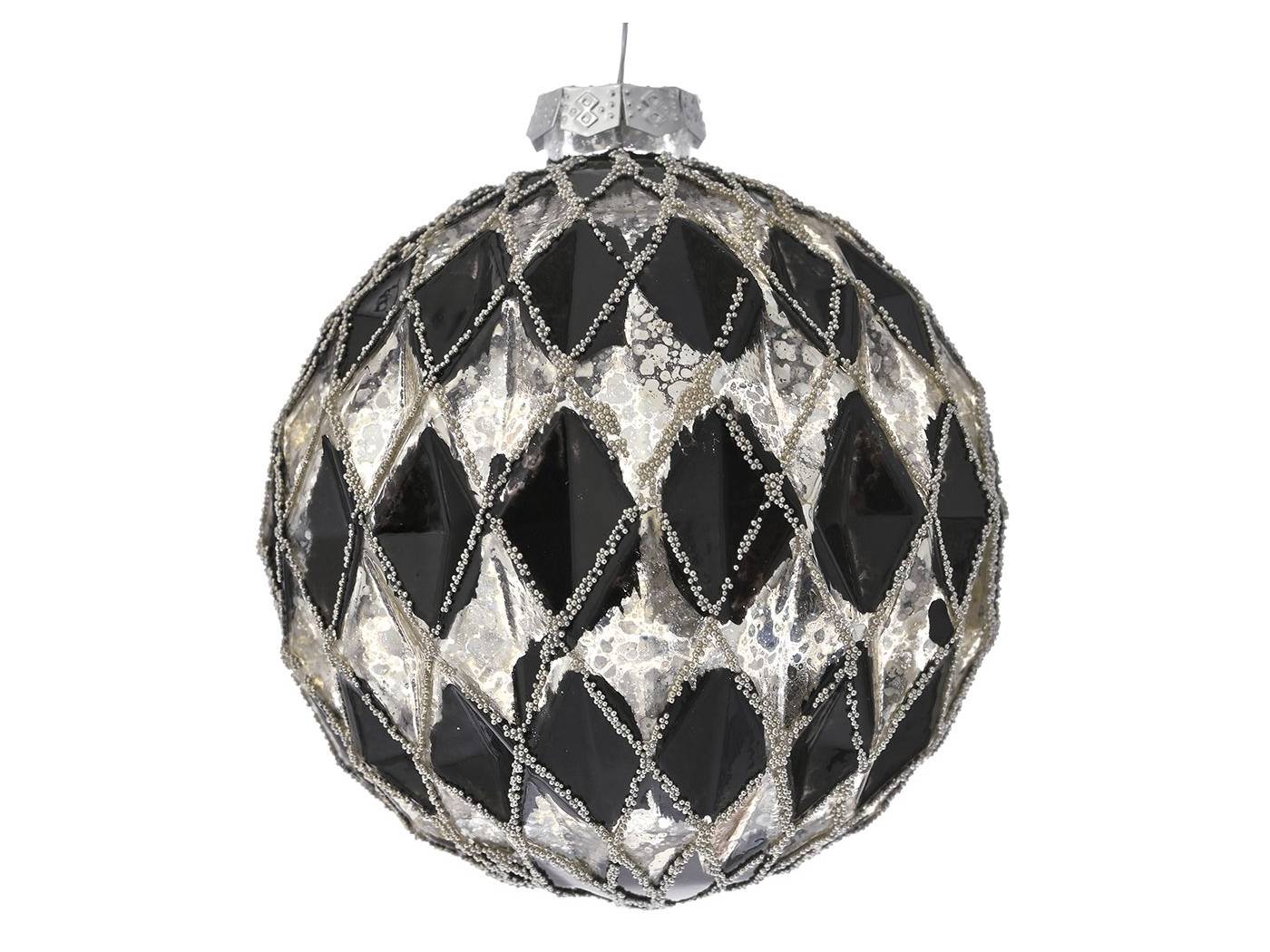 Χρυσή μαύρη γυάλινη μπάλα με ρόμβους 8 εκ. σετ 6