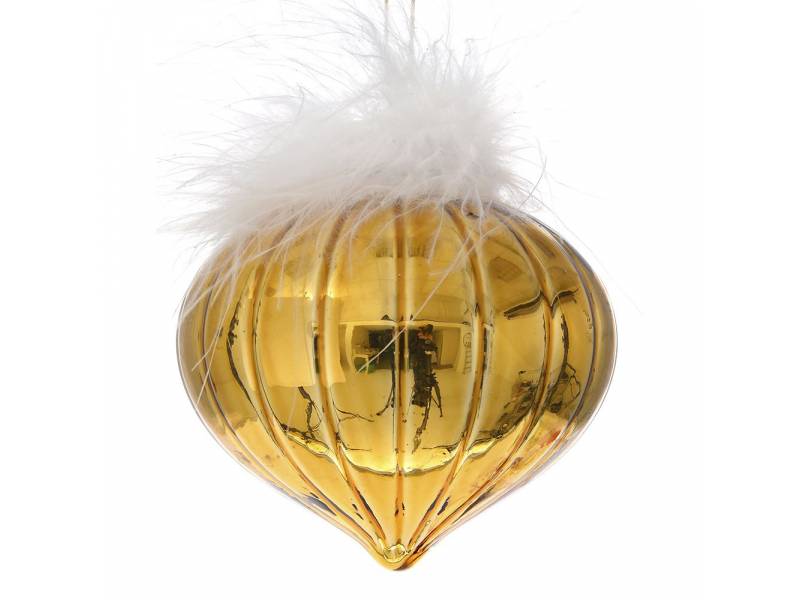 Χρυσό γυάλινο δάκρυ με πούπουλα 8 εκ. σετ 6-bigstore.gr