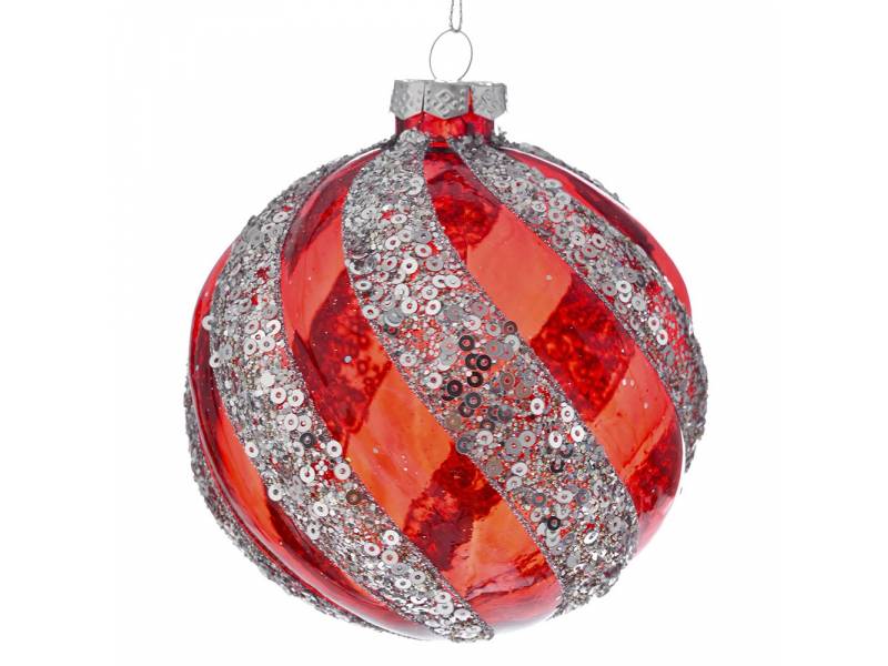 Κόκκινη ασημί γυάλινη μπάλα 10 εκ. σετ 4-bigstore.gr