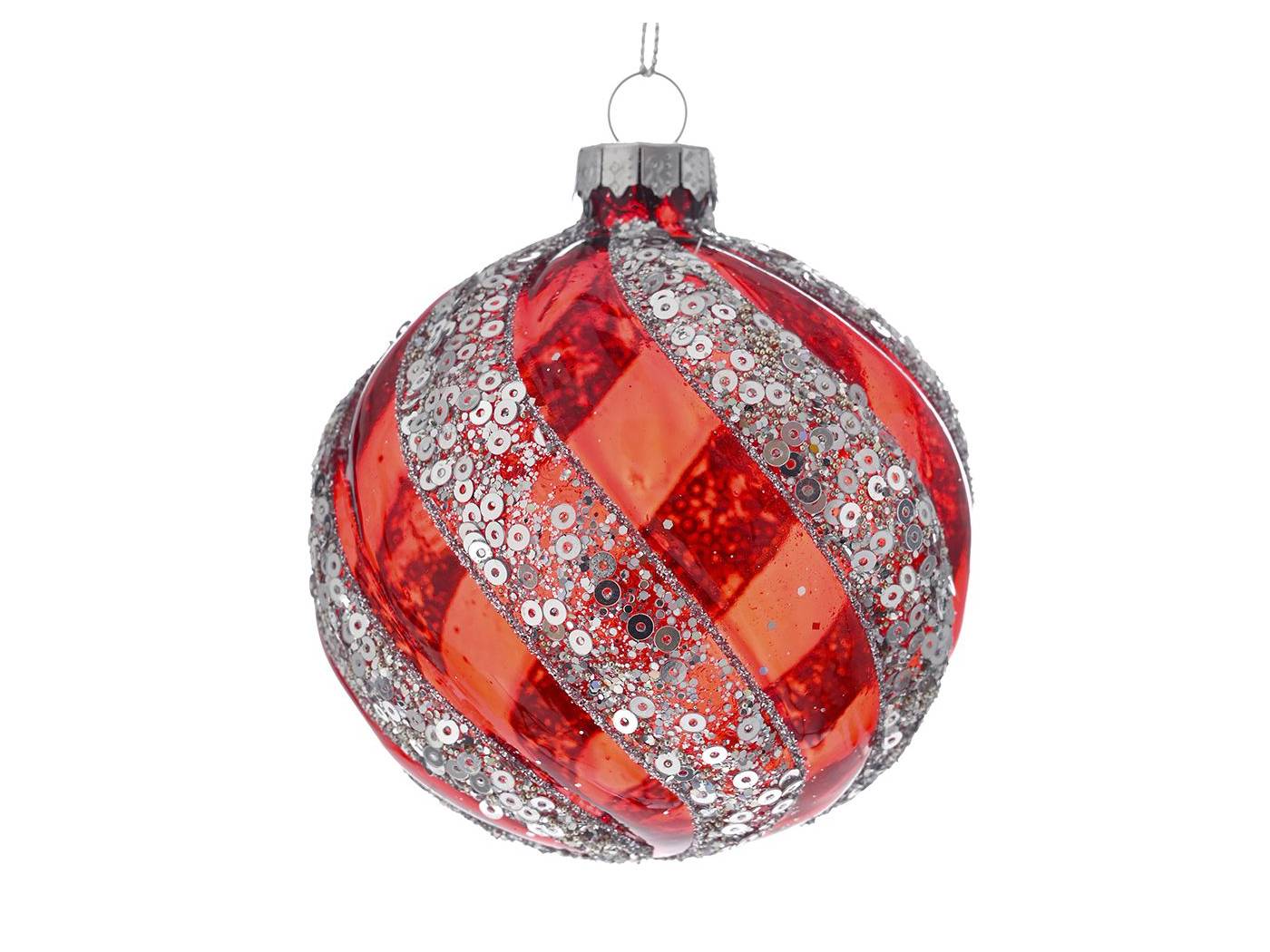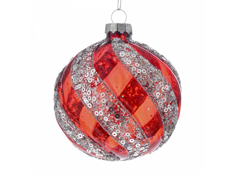 Κόκκινη ασημί γυάλινη μπάλα 8 εκ. σετ 6-bigstore.gr