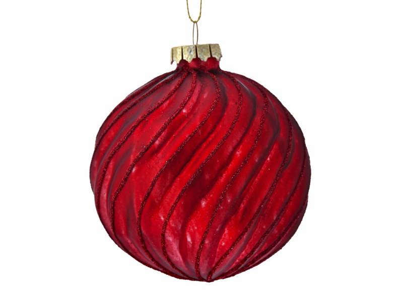 Κόκκινη ριγέ γυάλινη μπάλα 8 εκ. σετ 6-bigstore.gr