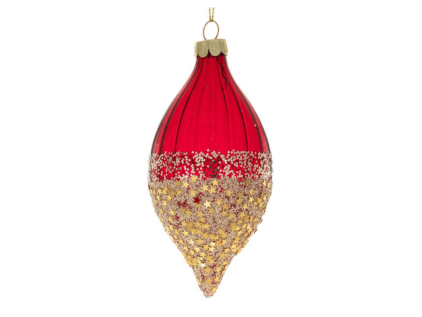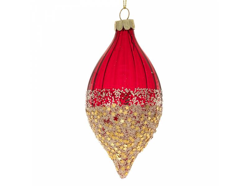 Σετ 6 κόκκινη γυάλινη μπάλα δάκρυ με χρυσά αστέρια 6x13 εκ.-bigstore.gr