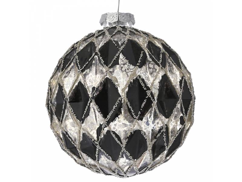 Χρυσή μαύρη γυάλινη μπάλα με ρόμβους 8 εκ. σετ 6