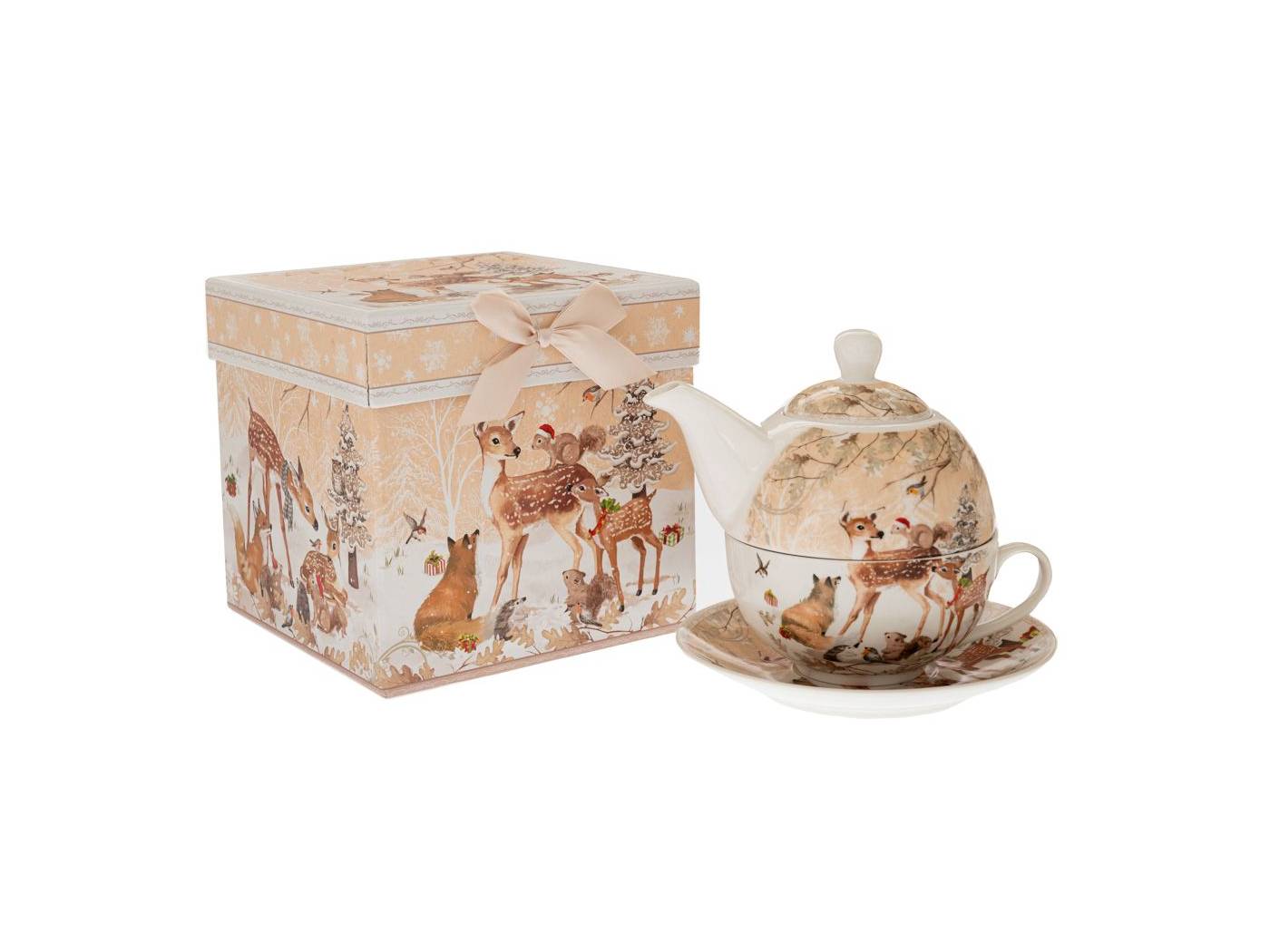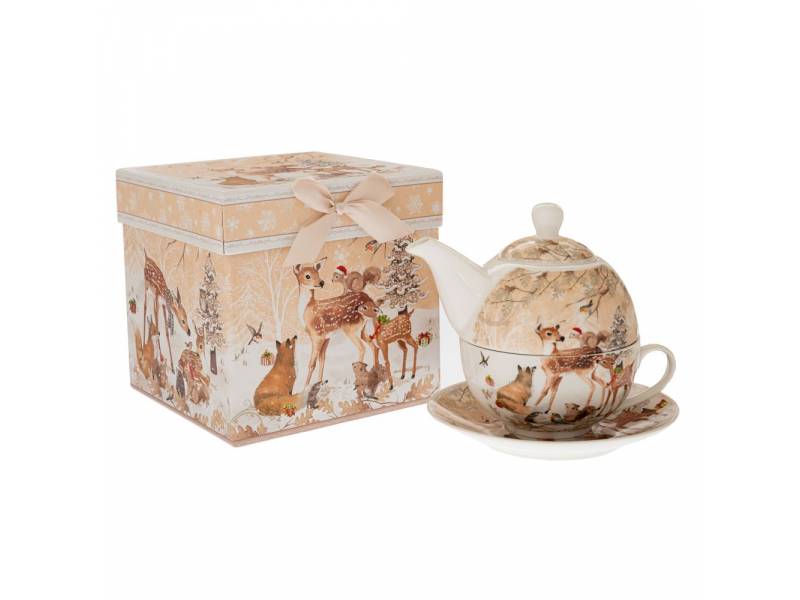 Σετ 2 Κεραμική Τσαγιερά, Κούπα And Πατάκι Με Ελαφάκια Σε Κουτί Δώρου