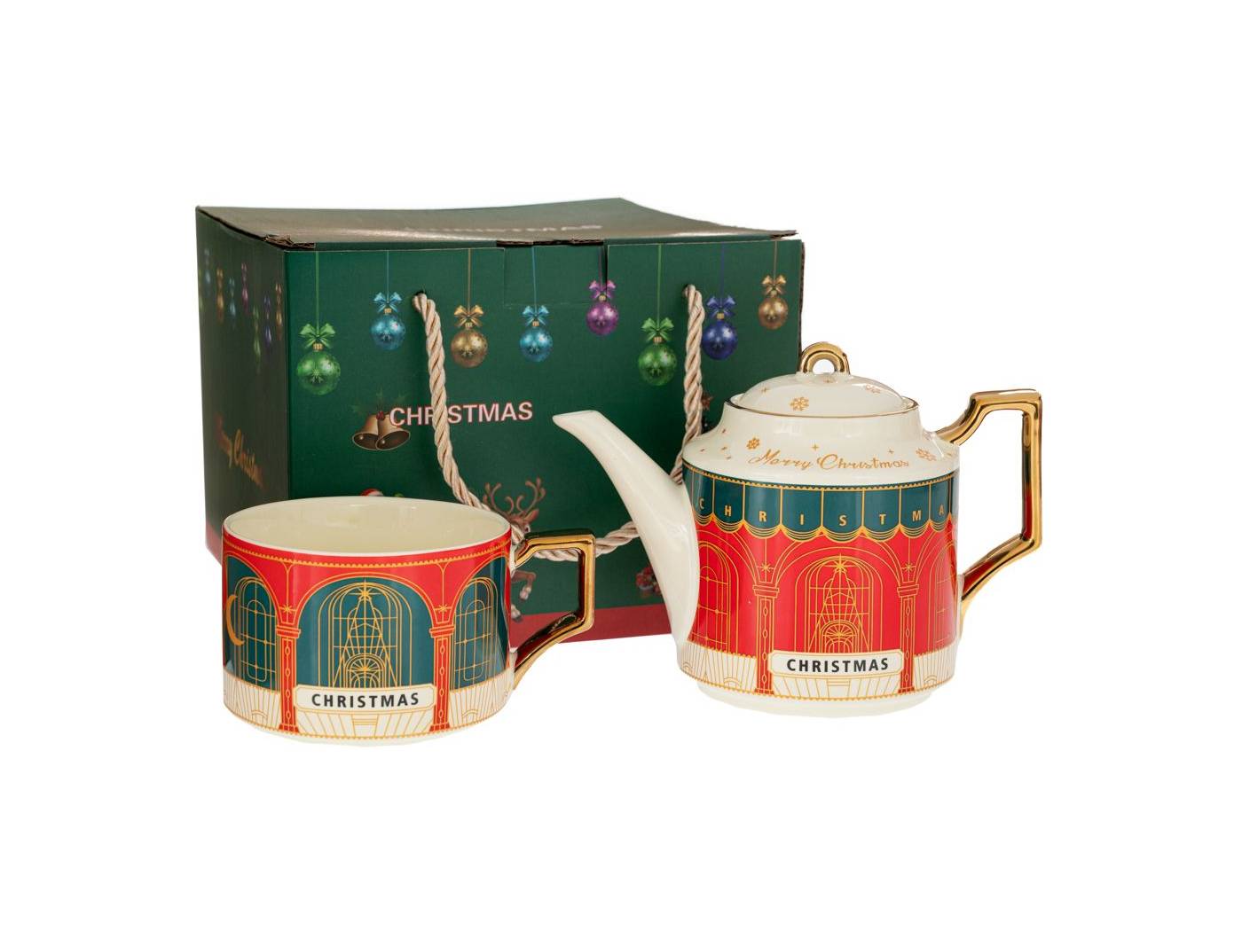 Σετ 2 Πράσινη Κόκκινη Κεραμική Τσαγιερά Με Κούπα And Πατάκι