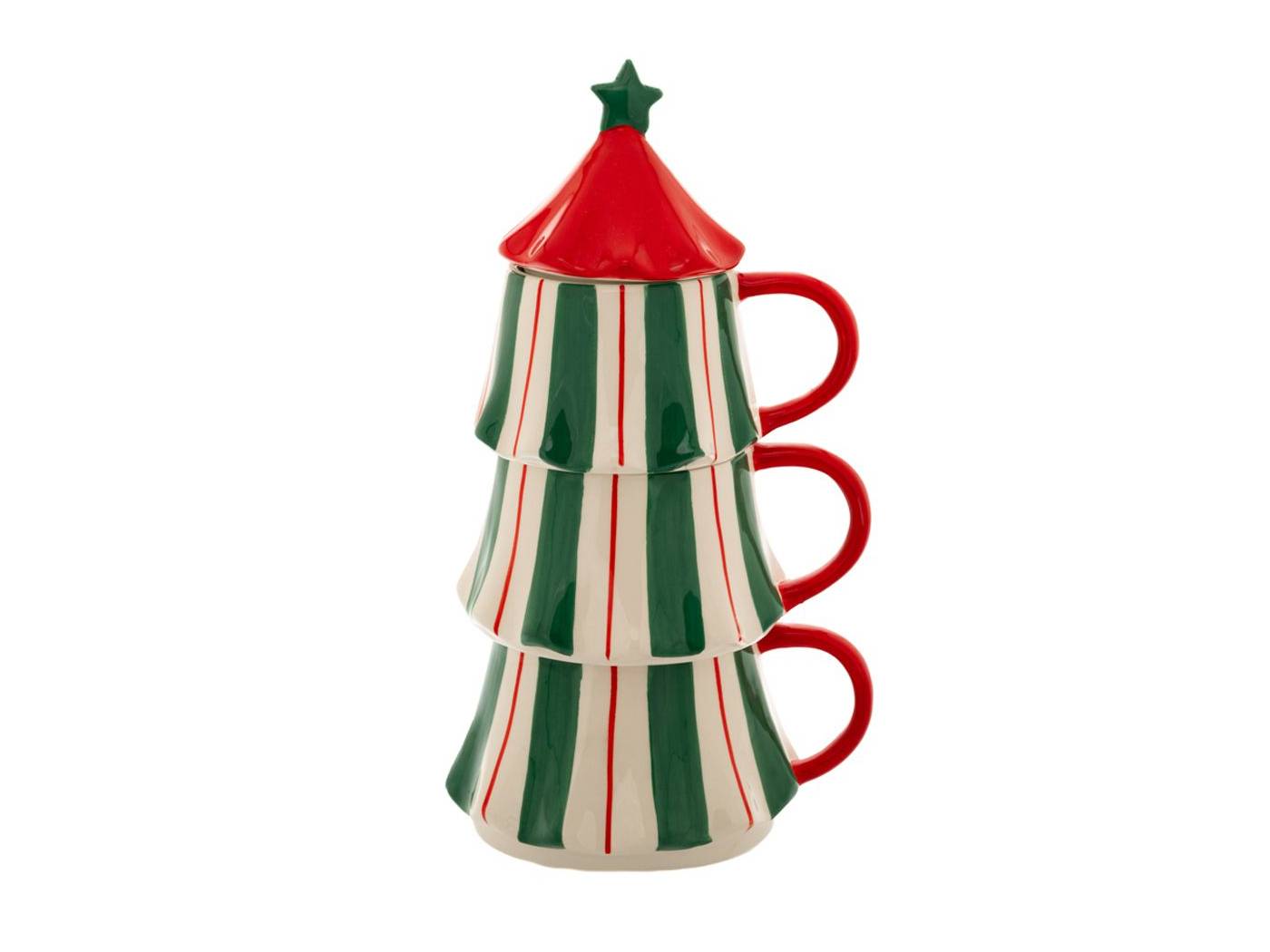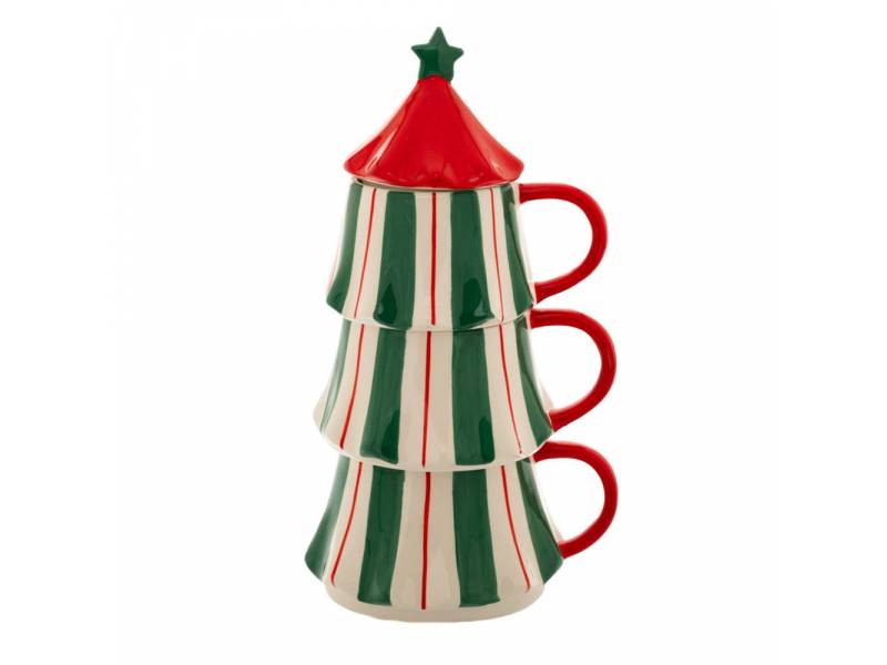 Σετ 3 πράσινες λευκές ριγέ κεραμικές κούπες σε σχήμα έλατου 15,5x13x27 εκ.-bigstore.gr