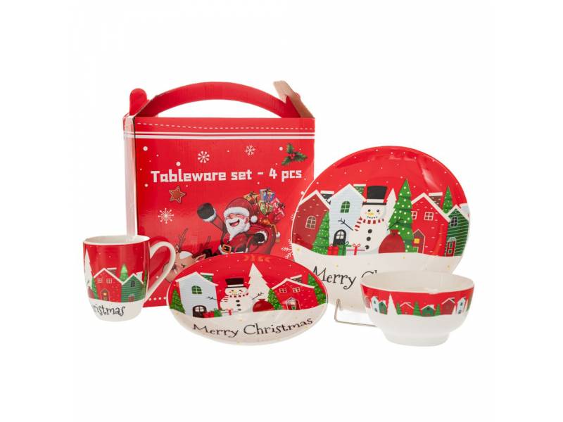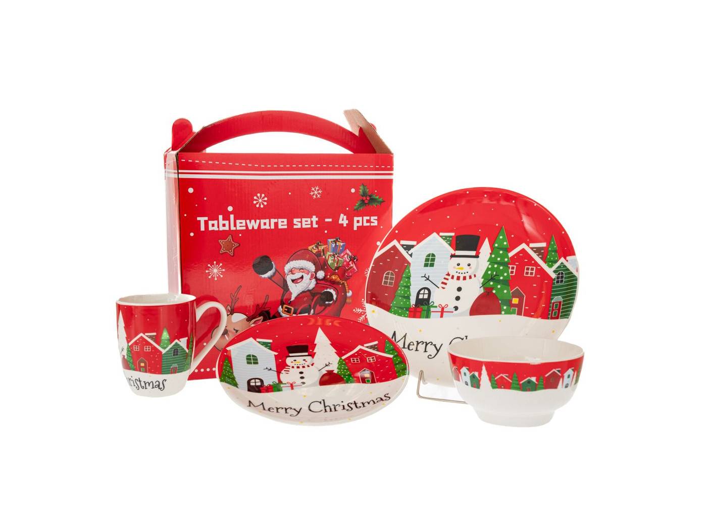 Σετ 4 Κεραμικό Σερβίτσιο Με Χιονάνθρωπο And Σπιτάκια
