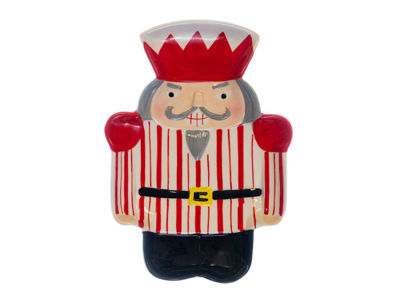 Κόκκινη λευκή ριγέ κεραμική τουρτιέρα σε σχήμα καρυοθραύστη 17x17x20 εκ.