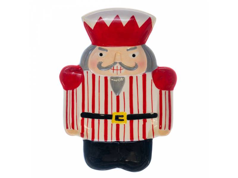 Κόκκινη ριγέ κεραμική πιατέλα σε σχήμα καρυοθραύστη 19x14x3 εκ.