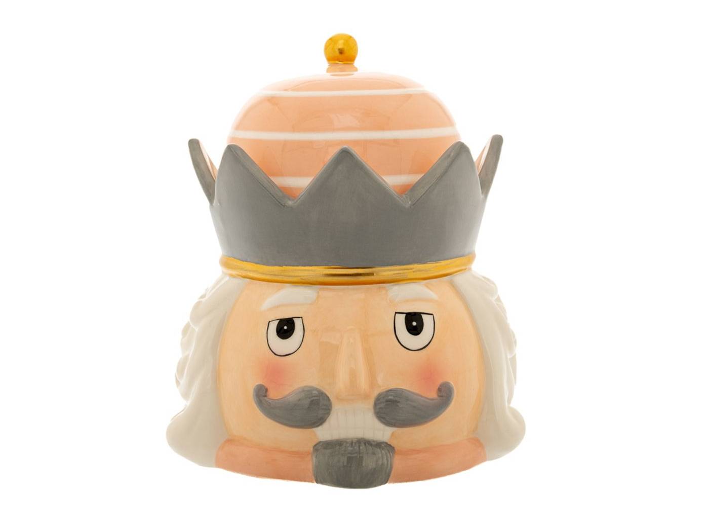 Γκρι ροζ κεραμική μπισκοτιέρα με καπάκι σε σχήμα καρυοθραύστη 19x17x22 εκ.-bigstore.gr