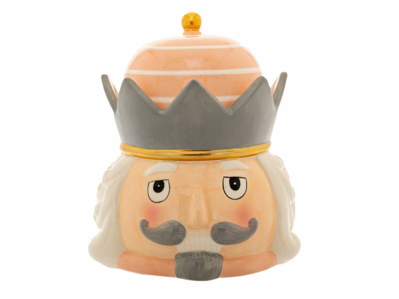 Γκρι ροζ κεραμική μπισκοτιέρα με καπάκι σε σχήμα καρυοθραύστη 19x17x22 εκ.-bigstore.gr