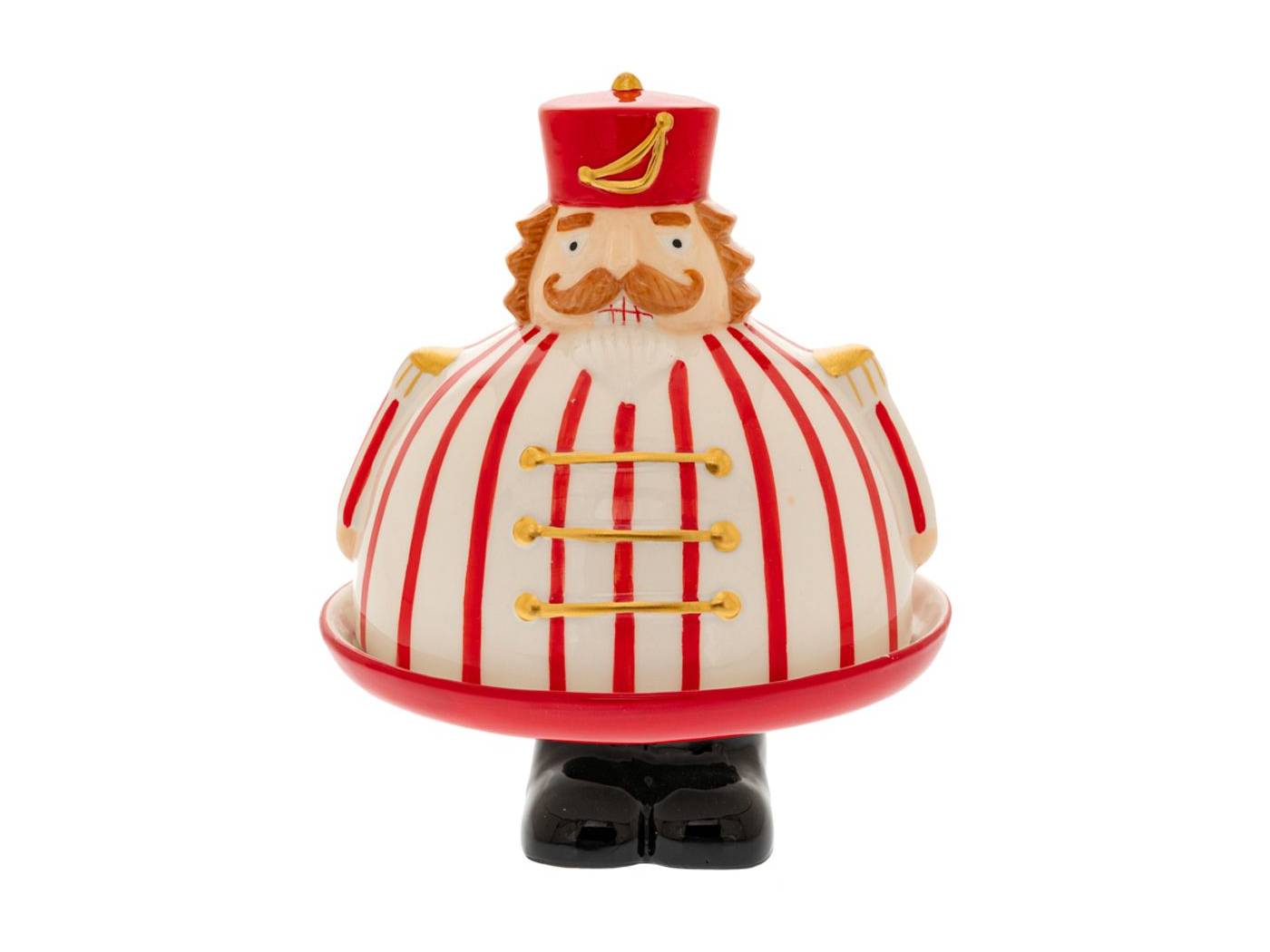 Κόκκινη λευκή ριγέ κεραμική τουρτιέρα σε σχήμα καρυοθραύστη 17x17x20 εκ.