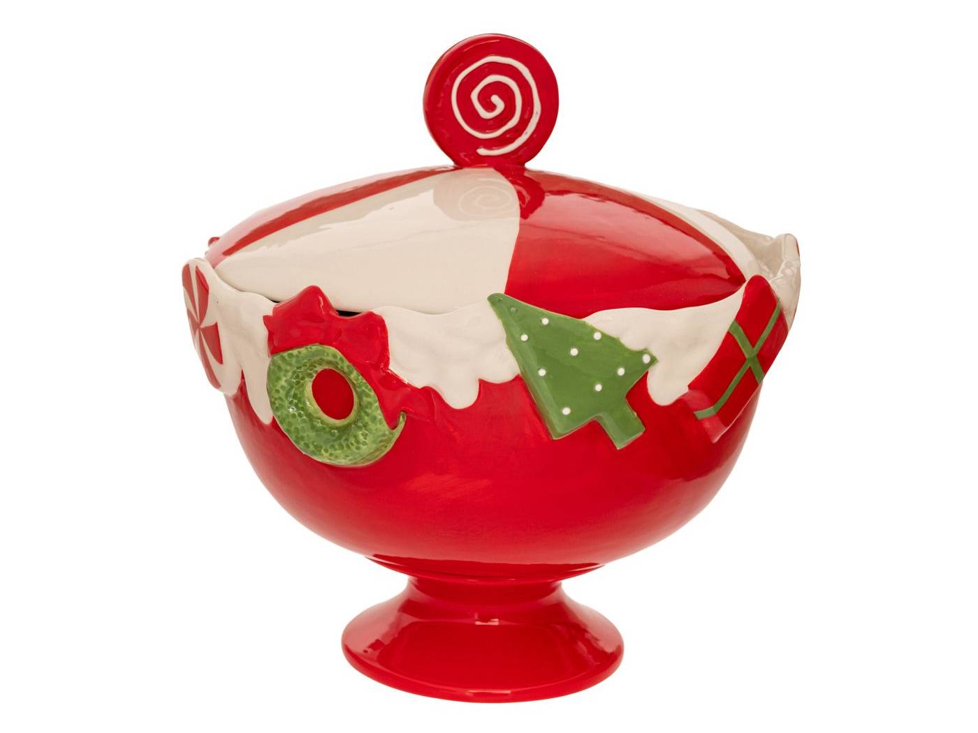 Κόκκινο λευκό κεραμικό μπολ καραμέλα με καπάκι με 22x22x24 εκ.-bigstore.gr