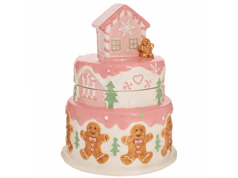 Ροζ κεραμική μπισκοτιέρα σπίτι GINGERBREAD 22X22X28EK-bigstore.gr