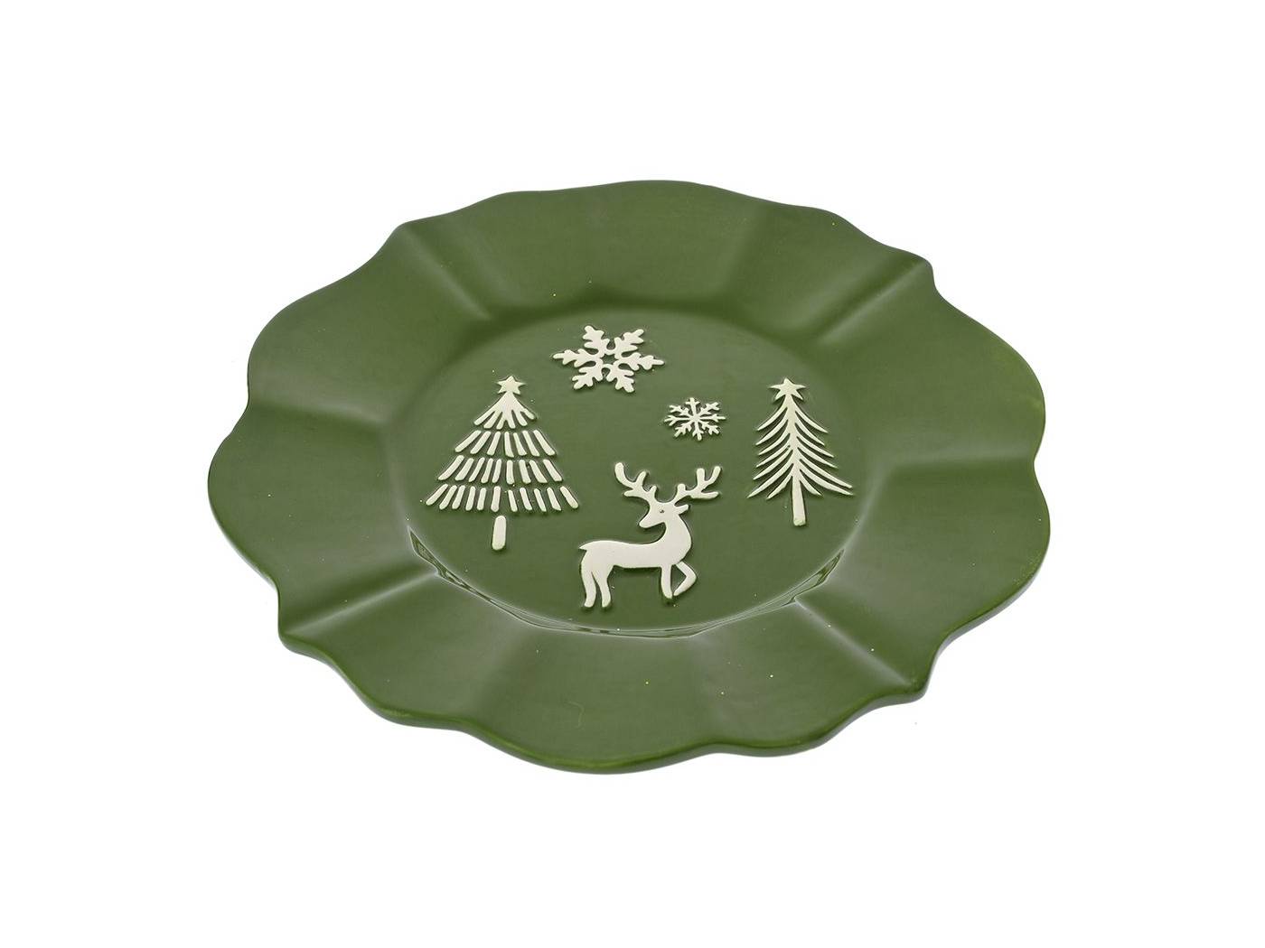 Πράσινο κεραμικό πιάτο με χριστουγεννιάτικο σκηνικό 24x24x3 εκ.-bigstore.gr