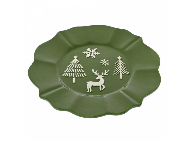 Πράσινο κεραμικό πιάτο με χριστουγεννιάτικο σκηνικό 24x24x3 εκ.-bigstore.gr