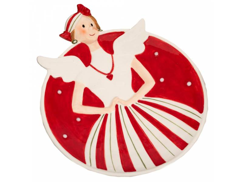 Κόκκινη κεραμική πιατέλα με νεράιδα 23x19x4 εκ.-bigstore.gr