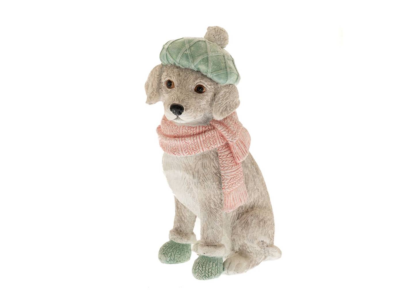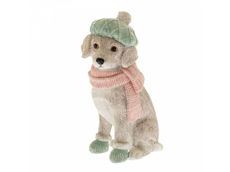 Γκρι πολυρεζίν σκύλος με σκούφο και κασκόλ 10x6x16 εκ.-bigstore.gr