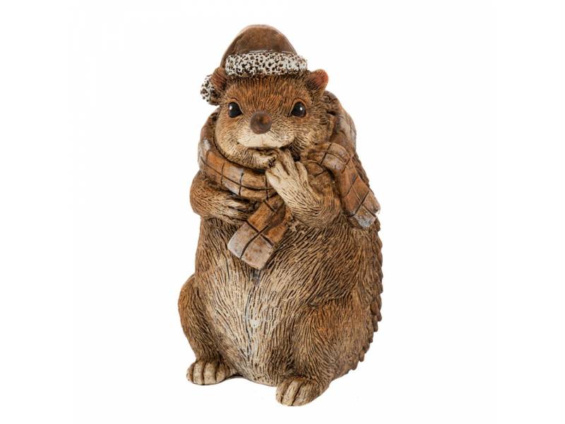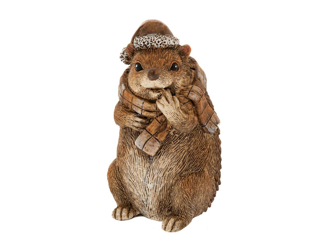 Καφέ πολυρεζίν σκαντζόχοιρος με κασκόλ και σκούφο 8x7x13 εκ.-bigstore.gr