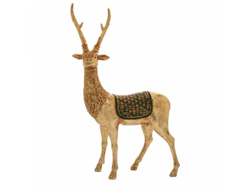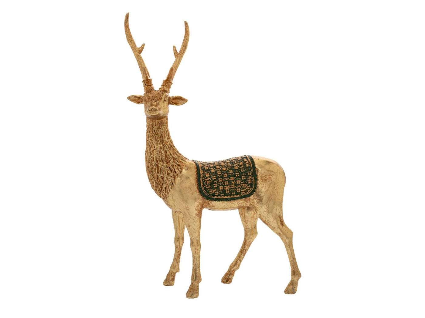 Χρυσός πολυρεζίν τάρανδος με πράσινη σέλα 31,5x17x48 εκ.
