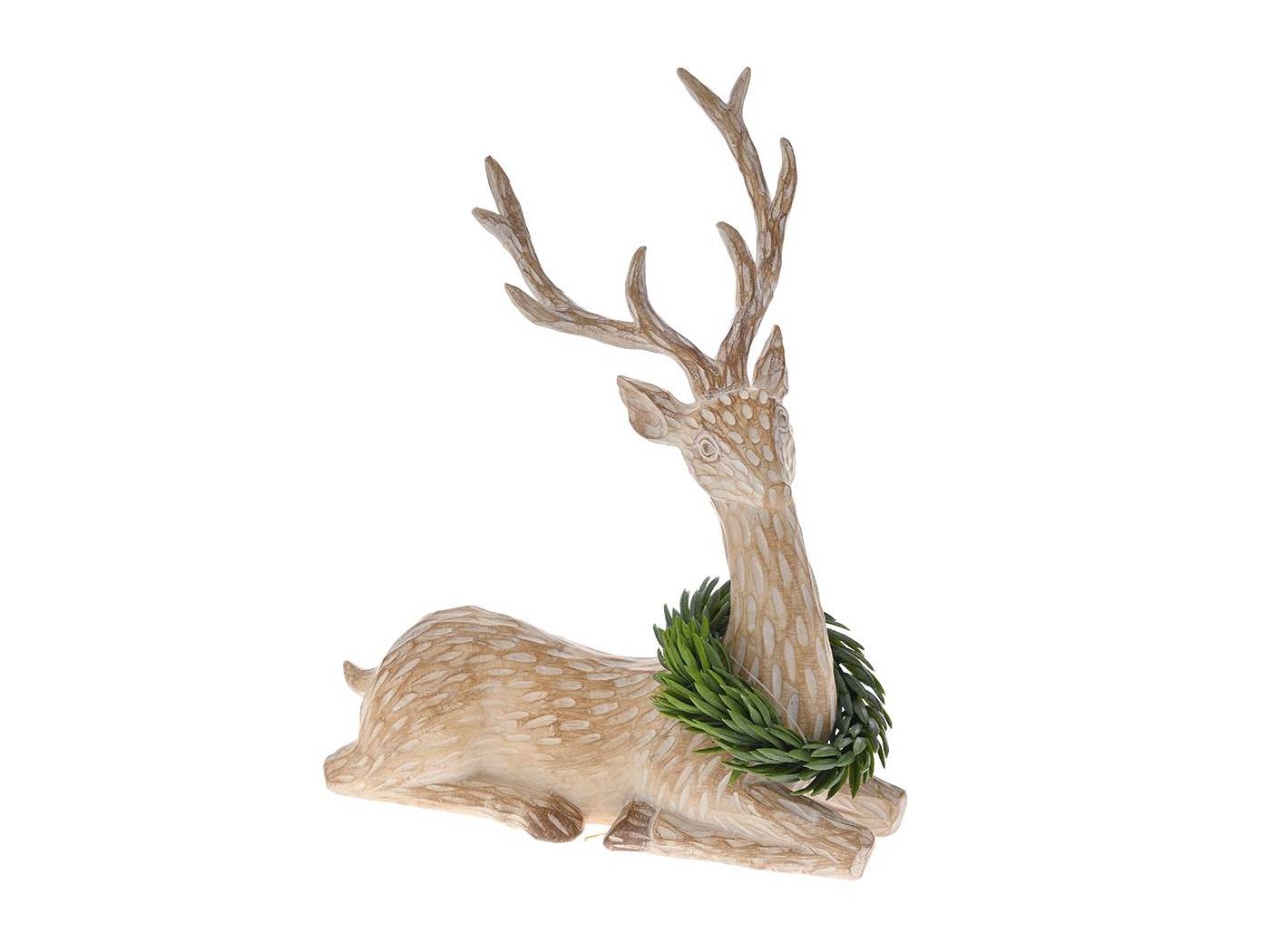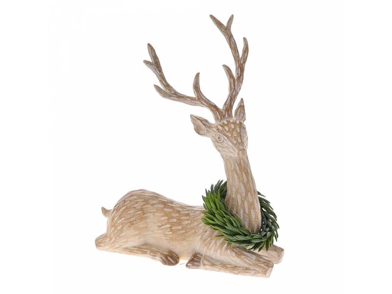 Πολυρεζίν καφέ τάρανδος με στεφάνι στο λαιμό 20x8x26 εκ.-bigstore.gr