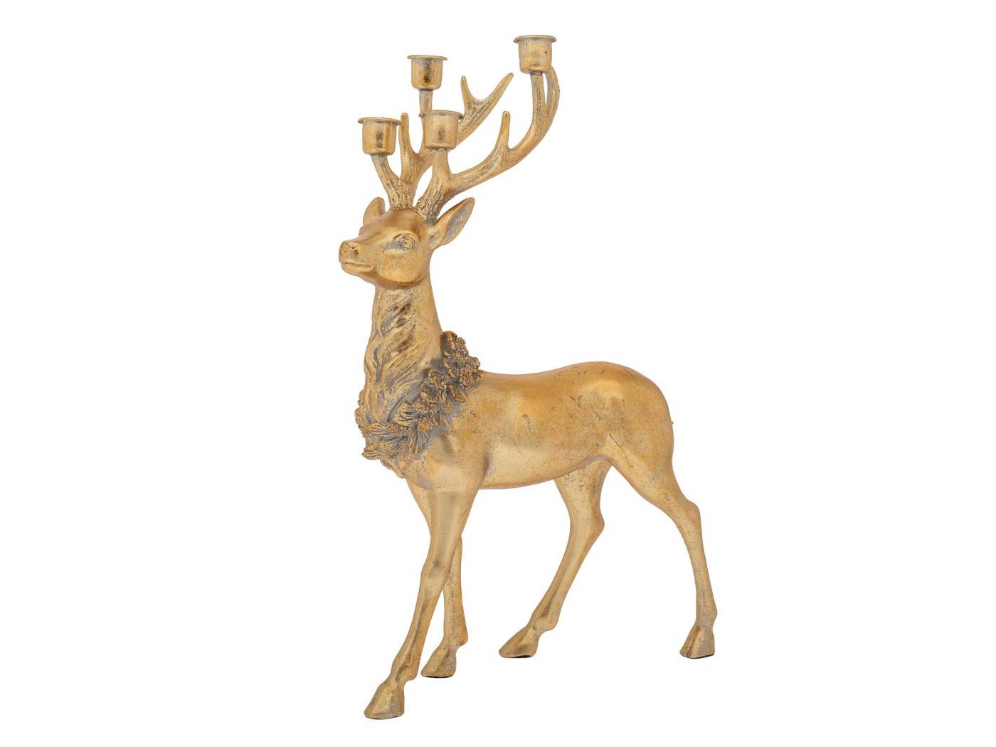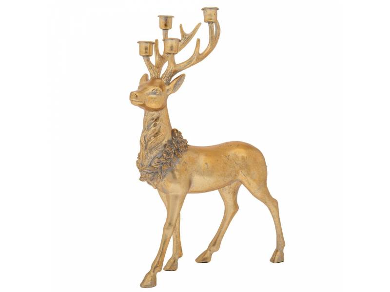 Λευκό πολυρεζίν καθιστό ελάφι με χρυσά κέρατα 30,5x15,5x28,5 εκ.