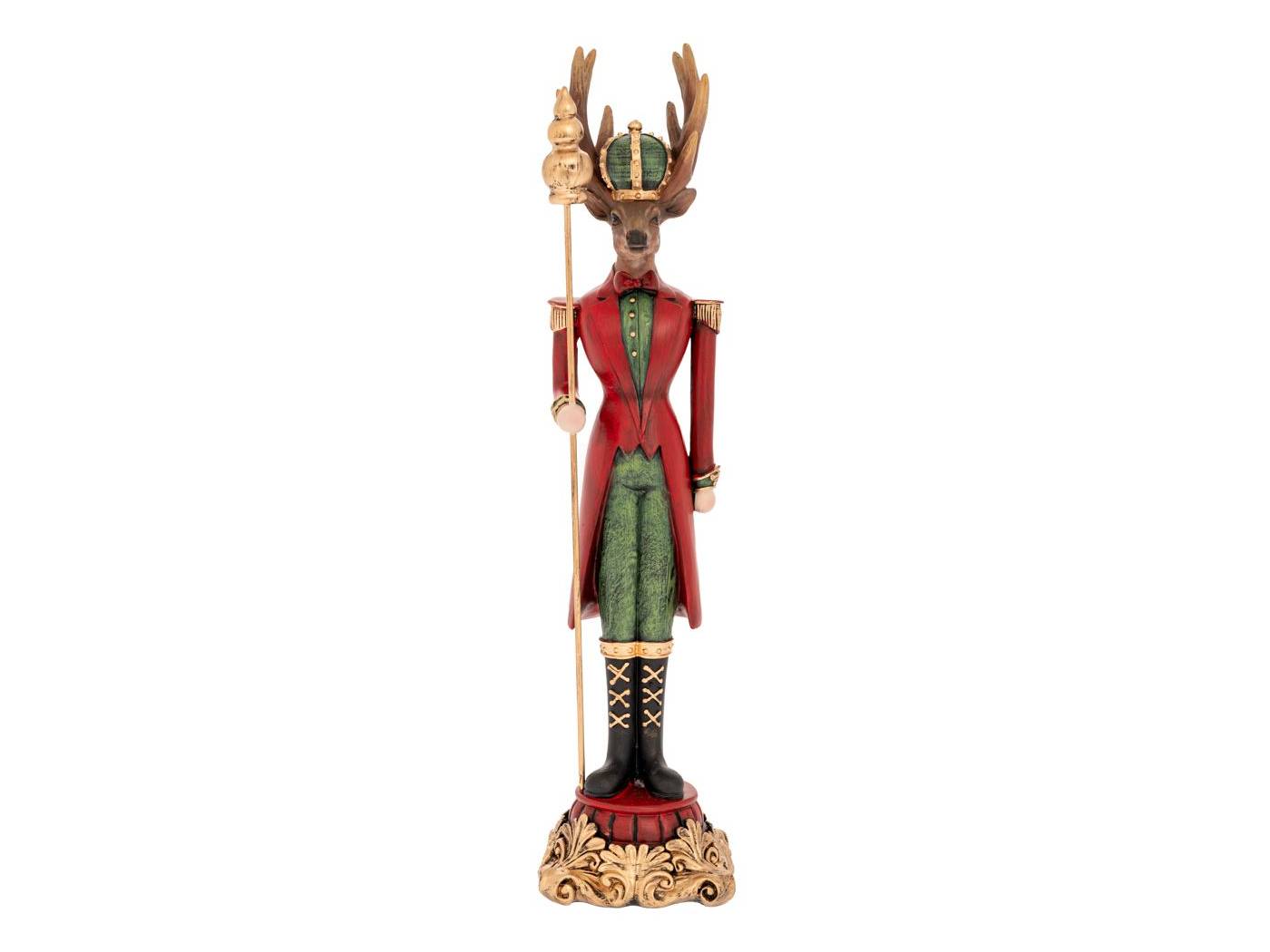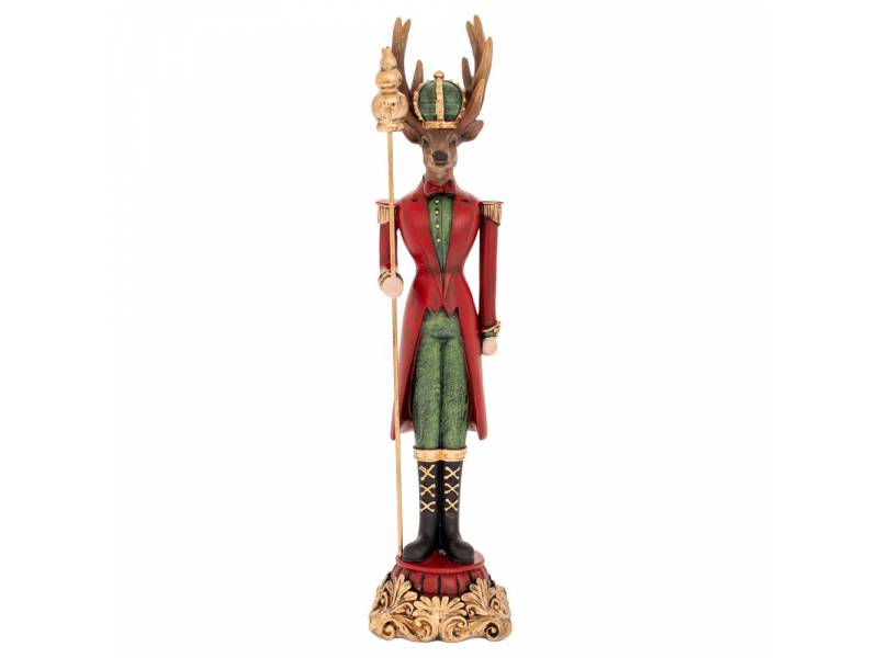 Κόκκινος πράσινος πολυρεζίν τάρανδος με σκήπτρο 9x9x37,5 εκ.-bigstore.gr