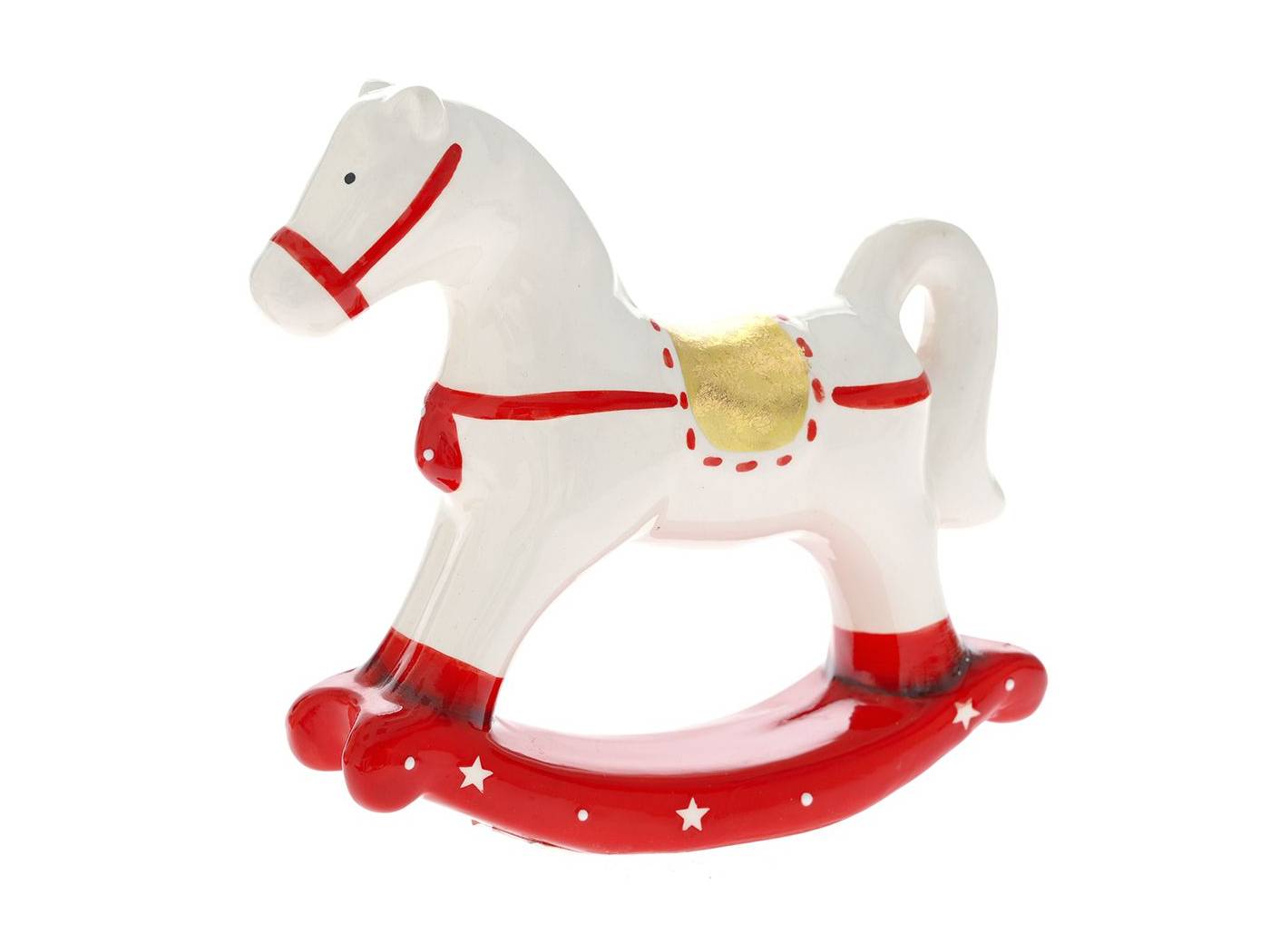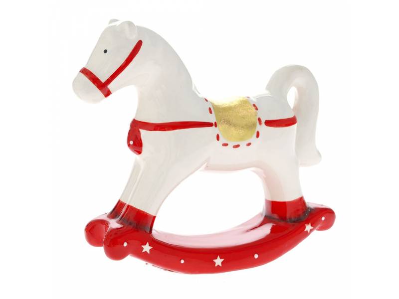Άσπρο κόκκινο κεραμικό αλογάκι 15x4x14 εκ.-bigstore.gr