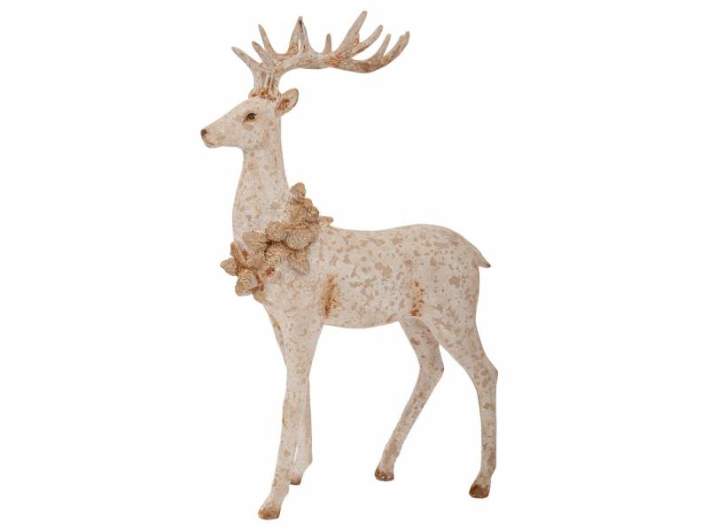 Λευκό πολυρεζίν όρθιο ελάφι με χρυσά κέρατα 32x15,5x50,5 εκ.-bigstore.gr