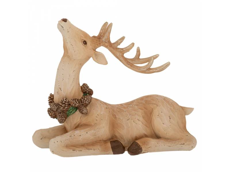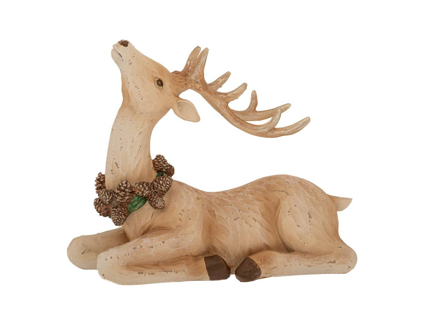 Λευκό πολυρεζίν καθιστό ελάφι που κοιτάζει ψηλά 21,5x10x16,5 εκ.-bigstore.gr
