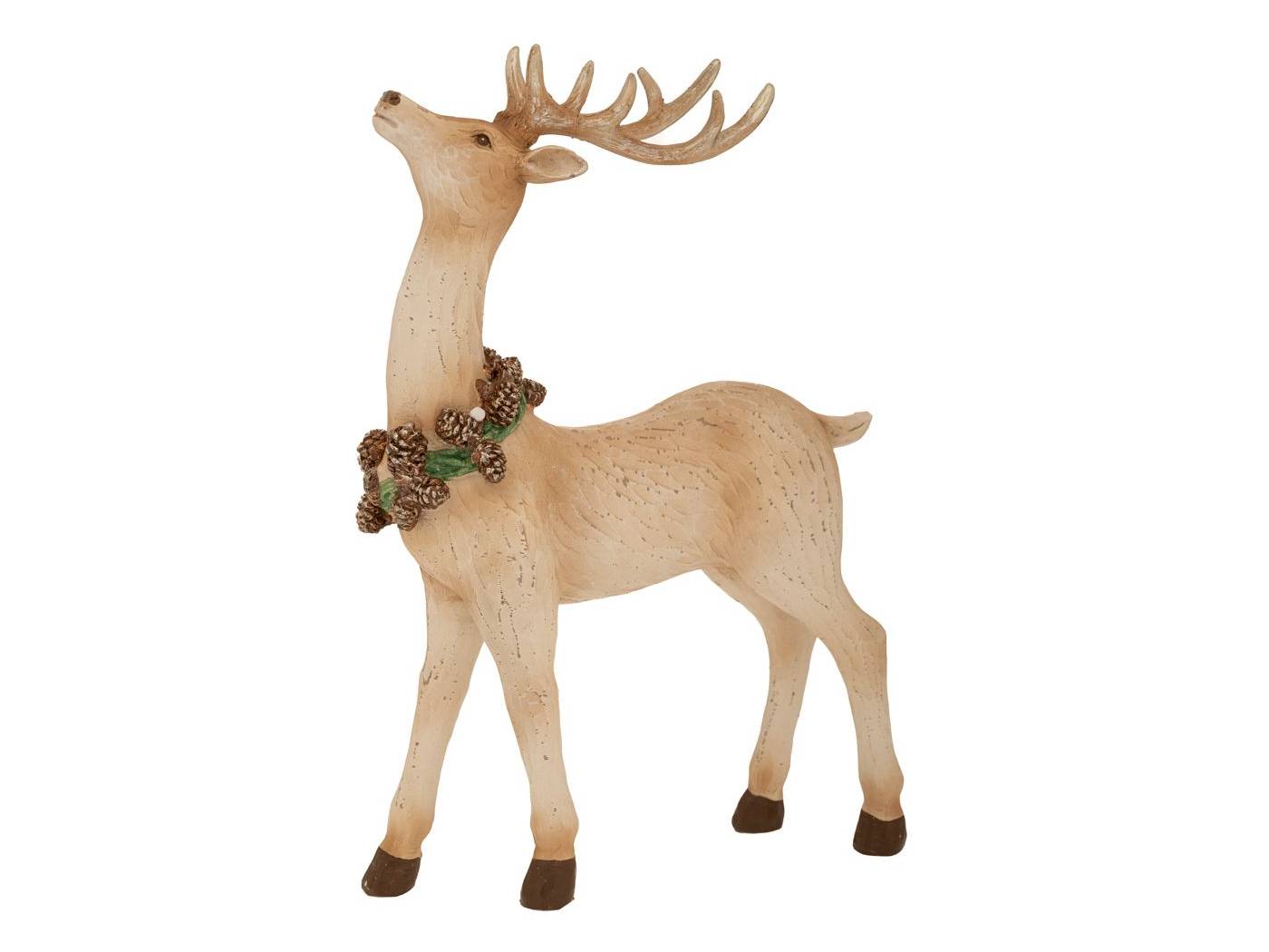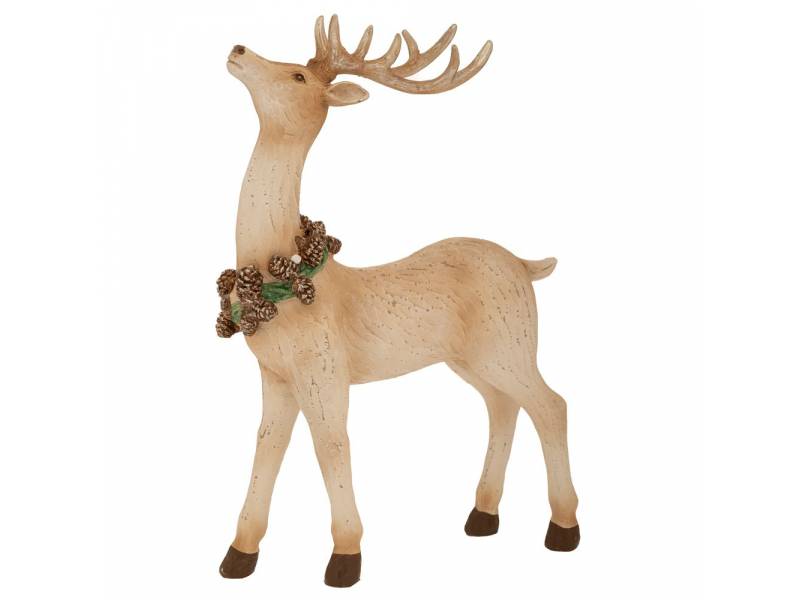 Λευκό πολυρεζίν όρθιο ελάφι με χρυσά κέρατα που κοιτάζει ψηλά 21,5x8x31 εκ.-bigstore.gr