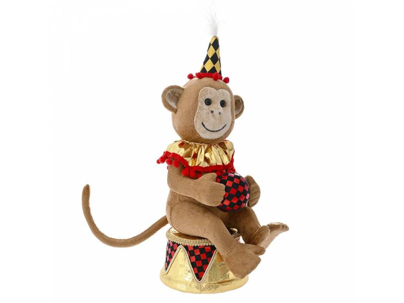 Μπεζ υφασμάτινος σκύλος με κόκκινο σκούφο και κασκόλ 21x37x54 εκ.