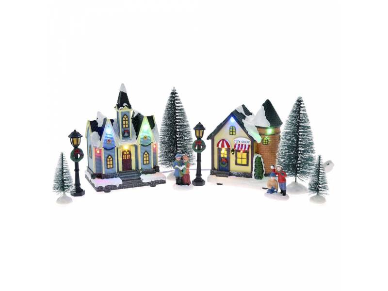 Φωτιζόμενο χωριό με πίστα πατινάζ και τρένο που κινείται 37x22,5x26 εκ. ρεύματος