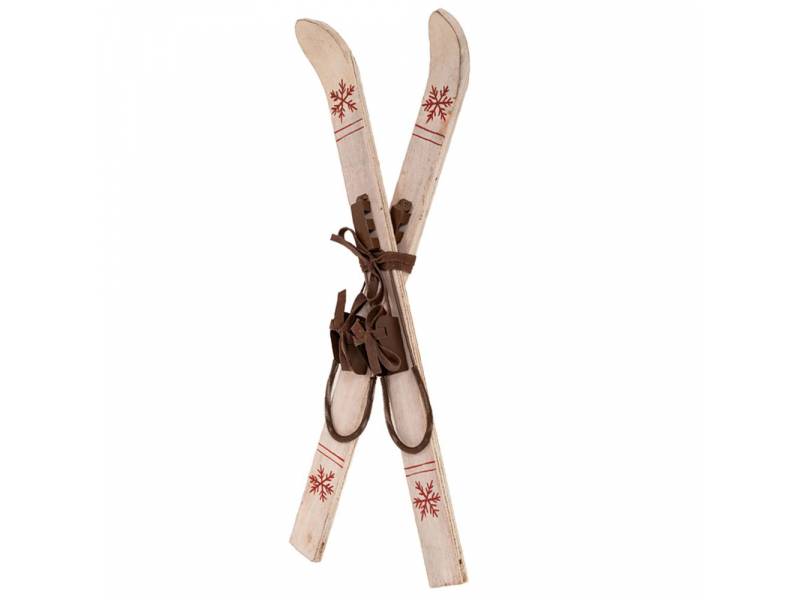 Καφέ ξύλινα πέδιλα σκι με μεταλλικές δέστρες 25x7x57 εκ.-bigstore.gr