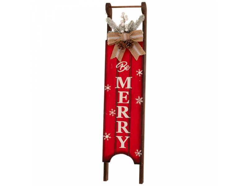 Κόκκινη ξύλινη πινακίδα έλκηθρο 20x10x90 εκ.