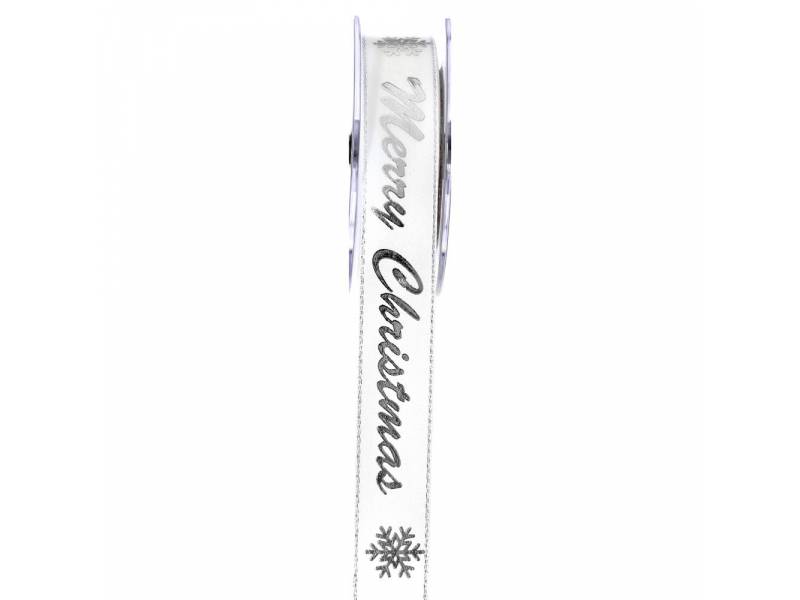 Κορδέλα σατέν ούγια μ.XMAS 2,5x9M λευκό-ασημί