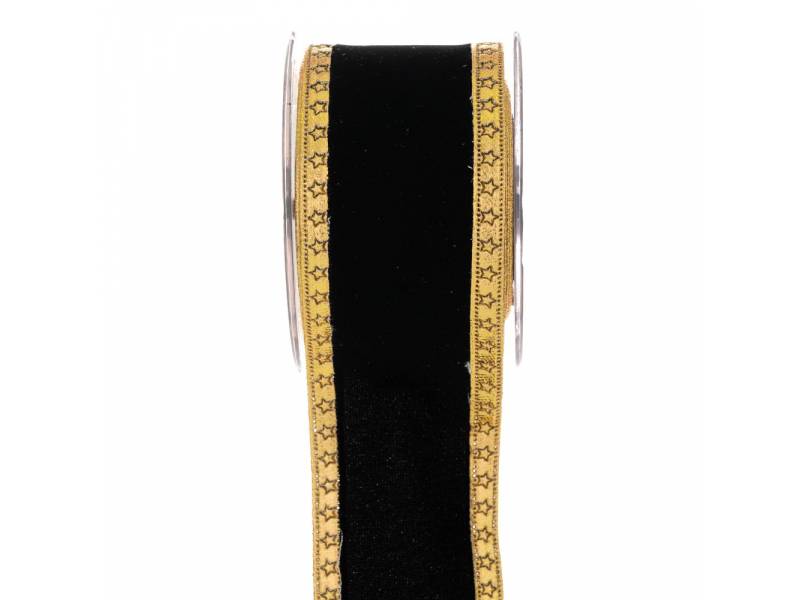 Κορδέλα .FLAT VELVET LONETA FOIL 6,7 εκ.X4,5m μαύρο-χρυσό-bigstore.gr